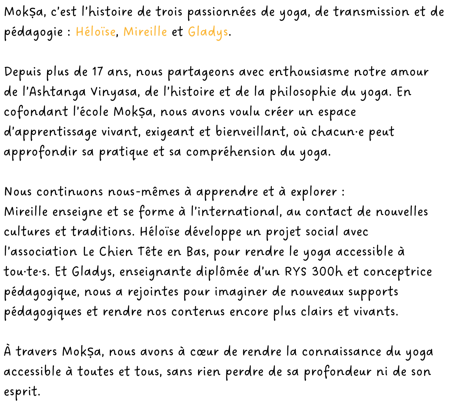 Les Études de Mokṣa sont nées de cette envie : offrir un espace accessible et vivant pour explorer les fondations culturelles, spirituelles et philosophiques du yoga, de façon guidée, pédagogique et ludique. On lit, on trie, on synthétise, et on transforme en ressources pédagogiques des heures de travail afin de vous rendre tout ça le plus clair possible afin que vous n'ayez plus qu'à suivre le fil que l'on vous propose.